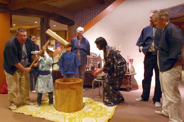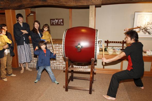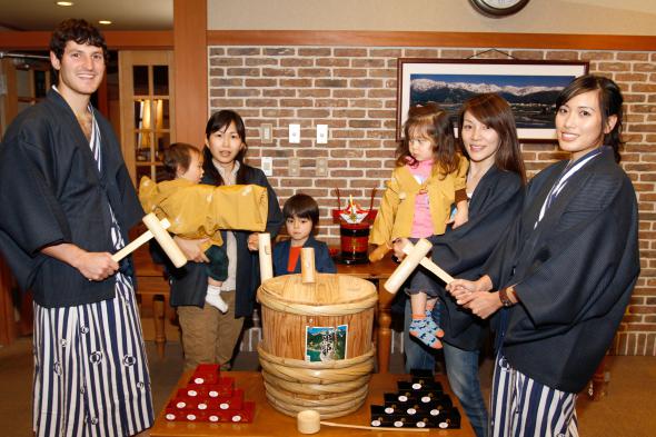 伝統的な日本建築の旅館内で、和太鼓演奏・餅つき・茶道・鏡開き等の日本文化の体験を。