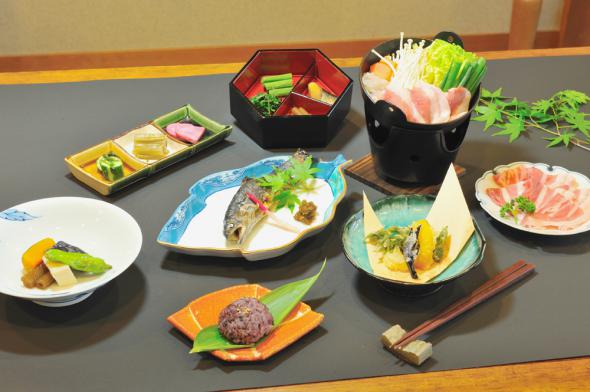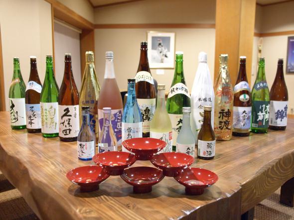 20種類ある地酒の中から6種類を選んで試飲できるアトラクション付きの郷土料理ディナーの体験を。テイスティングの際にお酒を入れる盃は、お土産としてプレゼントされます。